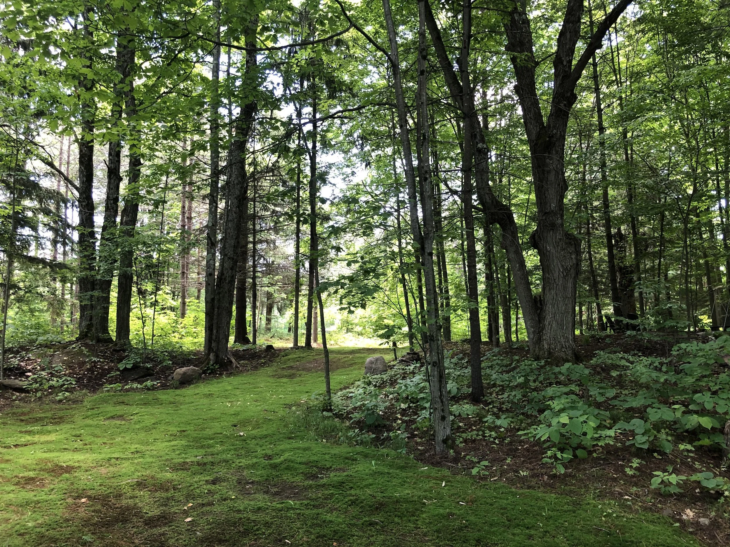 Natural moss covered trails at the Black River Retreat Couples Resort in Tweed, Ontario